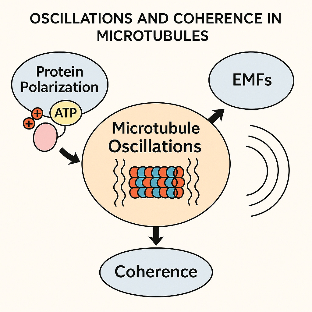 Microtubules are known to generate coherence / stability in cells by providing cell’s internal timing, communication, and spatial organization. They are like the conductors of a biochemical orchestra. For example, microtubule oscillations can help synchronize timing for ion channel openings, vesicle transport, gene expression timing, cell cycle transitions etc.