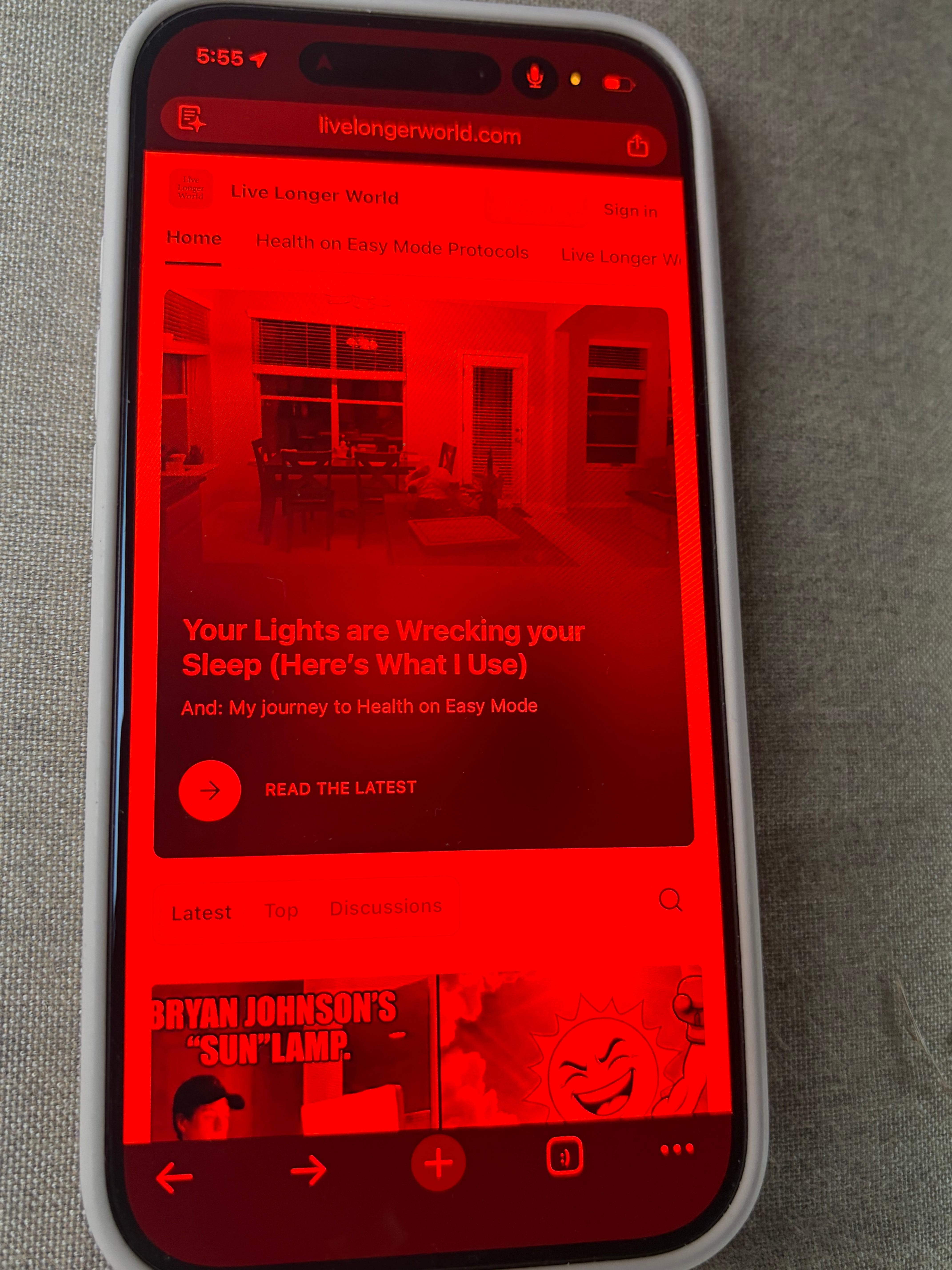 But changing my lights wasn’t enough. If your house is red but your phone and devices are blue, you are still signaling daytime to your brain.